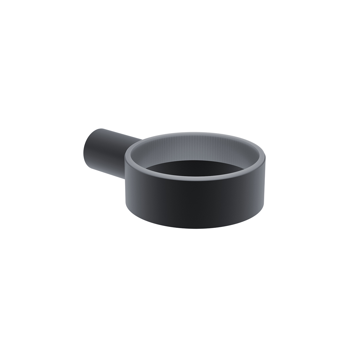 Black individual holder for glass cup, soap dish or soap dispenser.