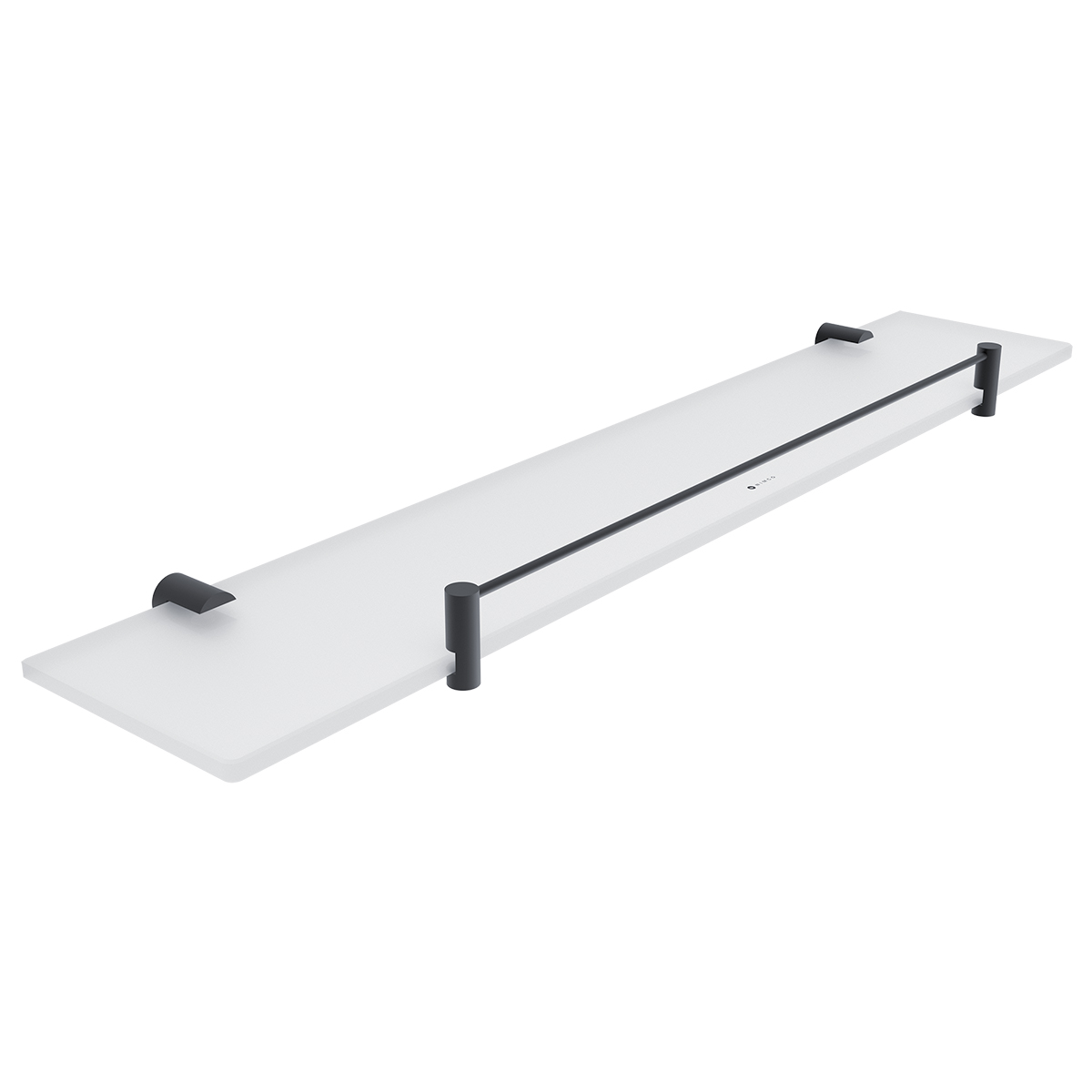 Shelf with rail. Extra clear glass, satin . Size 60x11 cm. 8 mm thick glass!
