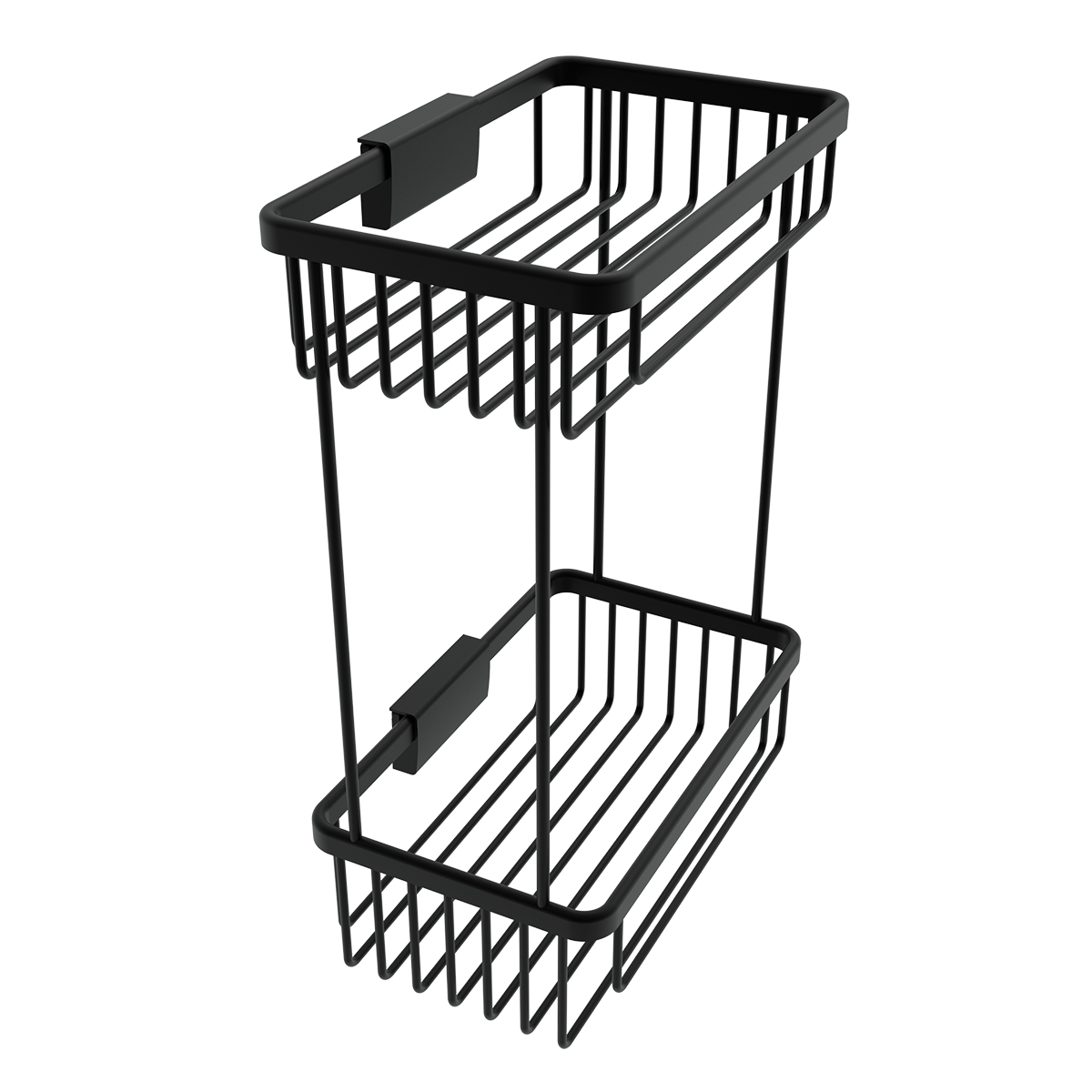 Black two-tier bathroom wire shelf, easy to remove and clean.