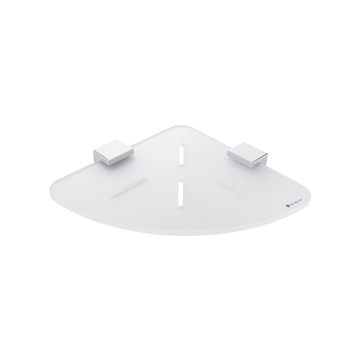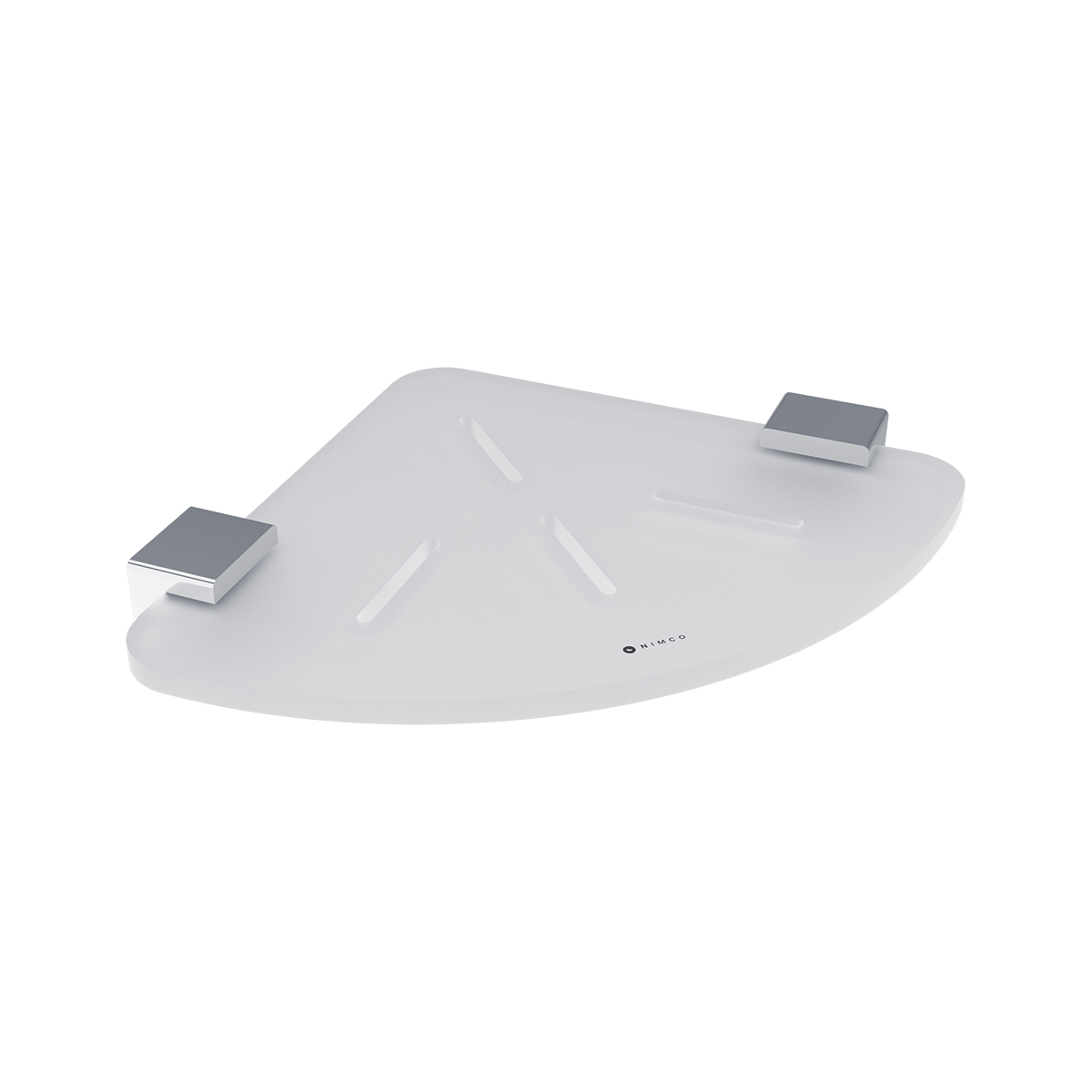 Corner shelf with milling made of plexiglass. Brass holders, chrome surface finish.