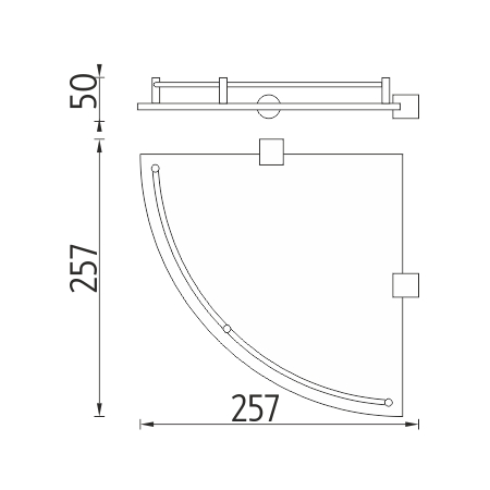 Corner shelf made of satin glass with rail.