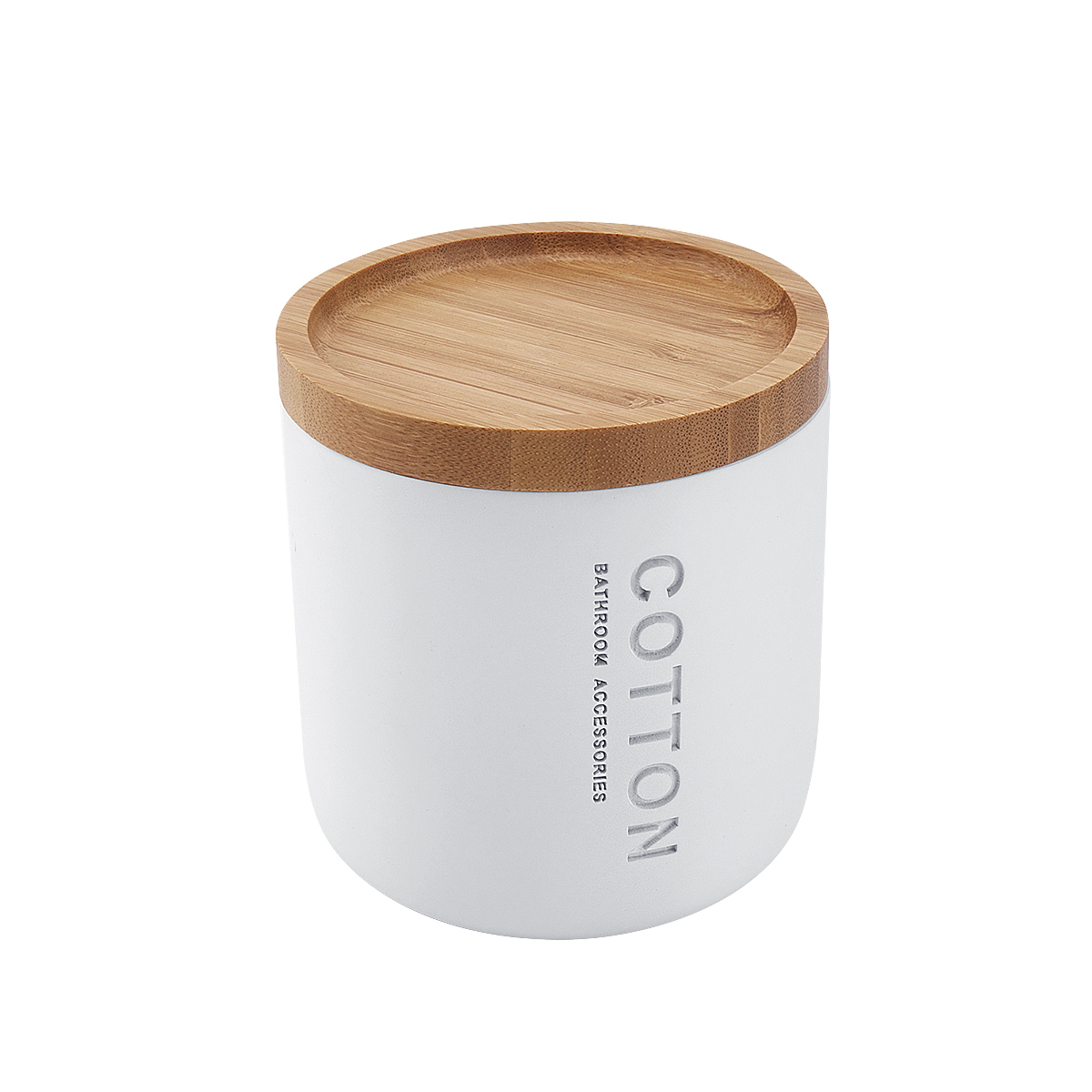 Cotton pad box. White color. Made of polyresin, bamboo.