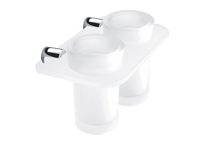 Double glass cup holder. Holder made of plexiglass with satin surface.