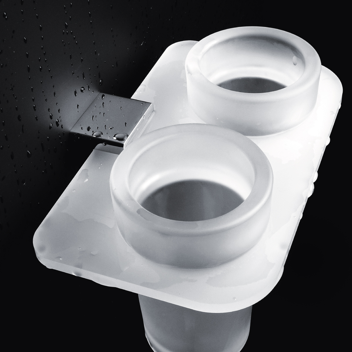 Double glass cup holder. Holder made of plexiglass, satin surface finish.