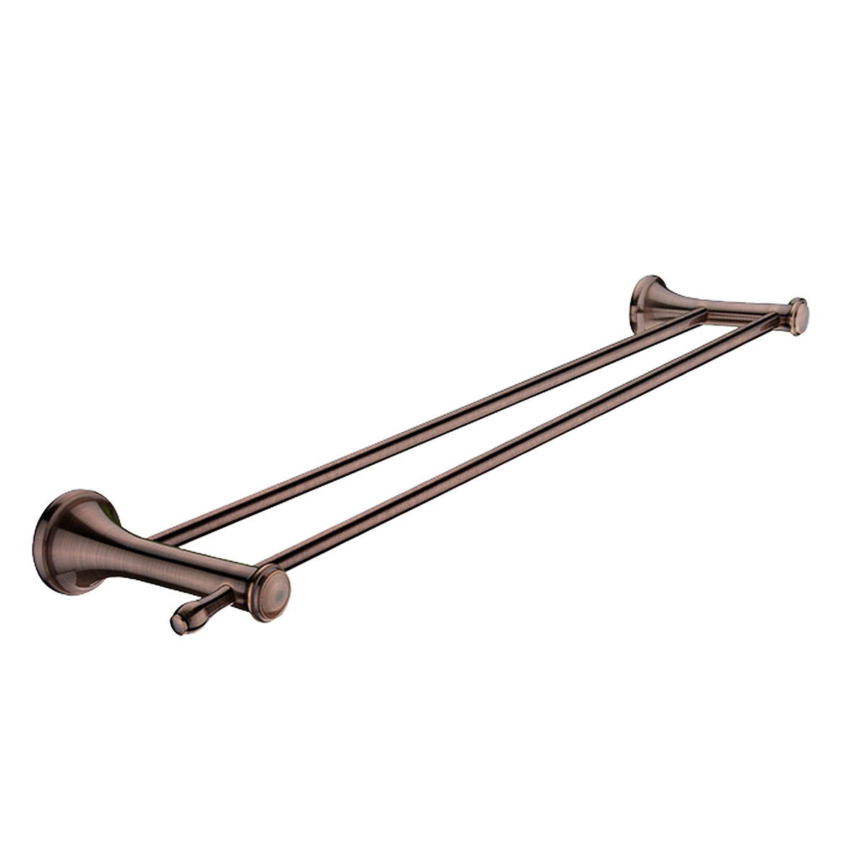 Double towel holder. 63,5 cm long. Made of brass with antique copper surface finish.