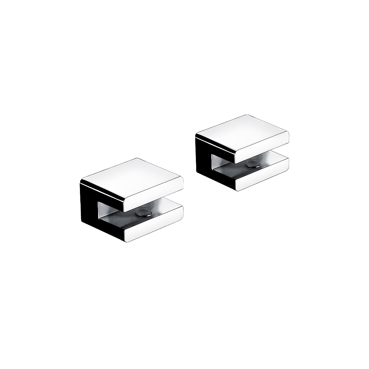 Individual shelf holders for glass of maximum thickness 8 mm. Brass holder / chrome.