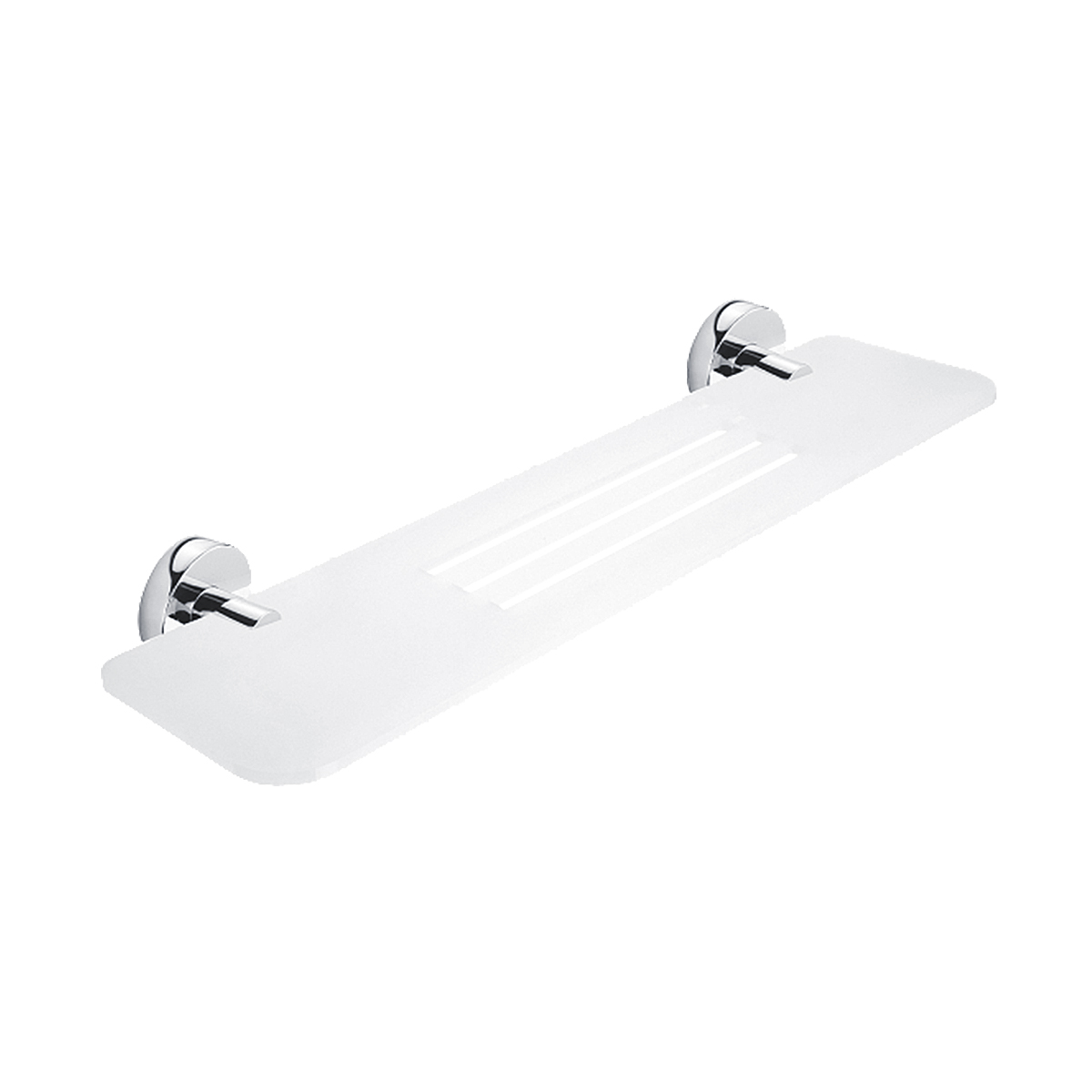 Shelf with milling, made of satin plexiglass. 50 cm long. Brass holders, chrome surface finish.