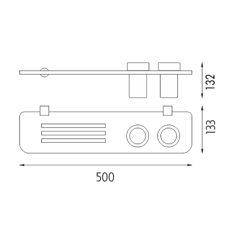 Shelf with milling, glass cups made of plexiglass, satin surface. 50 cm.