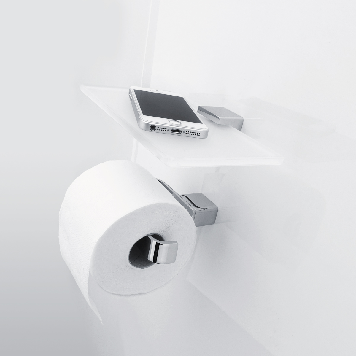 Shelf with one holder. Extra clear glass, satin . Size 20x11 cm. Brass holder / chrome.