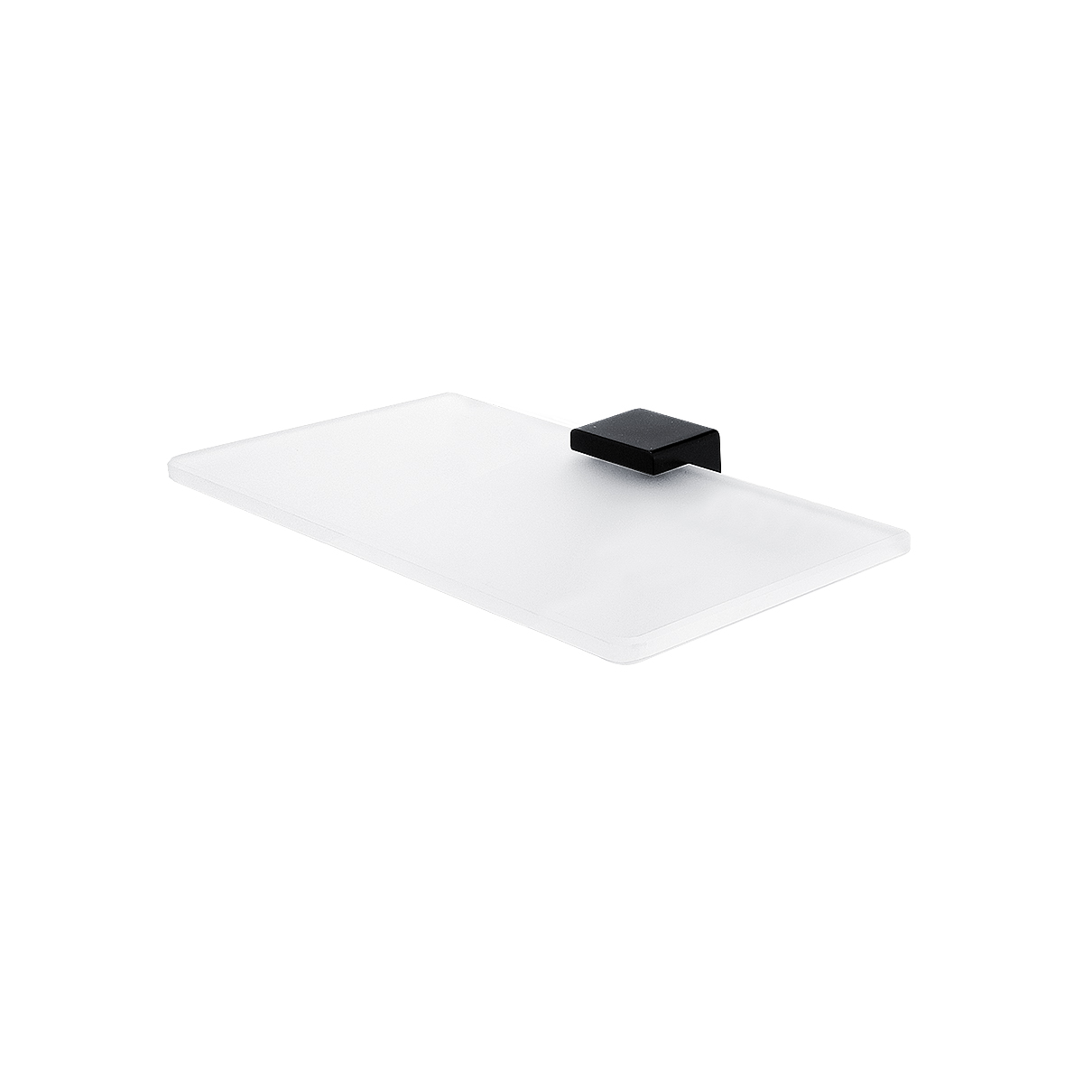 Shelf with one holder. Extra clear glass, satin . Size 20x11 cm. Brass holder / black matte.