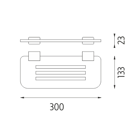 Shelf with milling, made of satin plexiglass. 30 cm long. Brass holders, chrome surface finish.