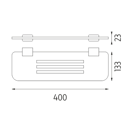 Shelf with milling, made of satin plexiglass. 40 cm long. Brass holders, chrome surface finish.