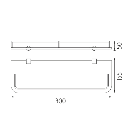 Shelf with rail, 30 cm