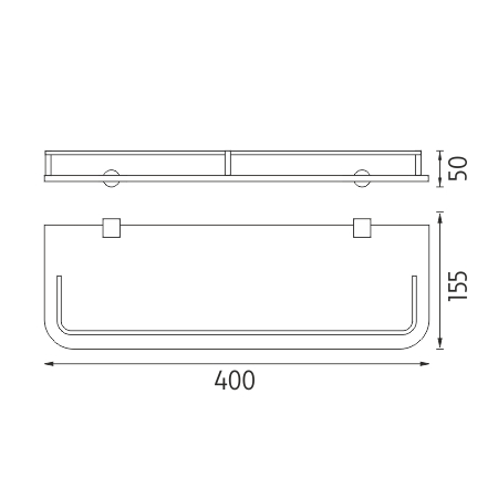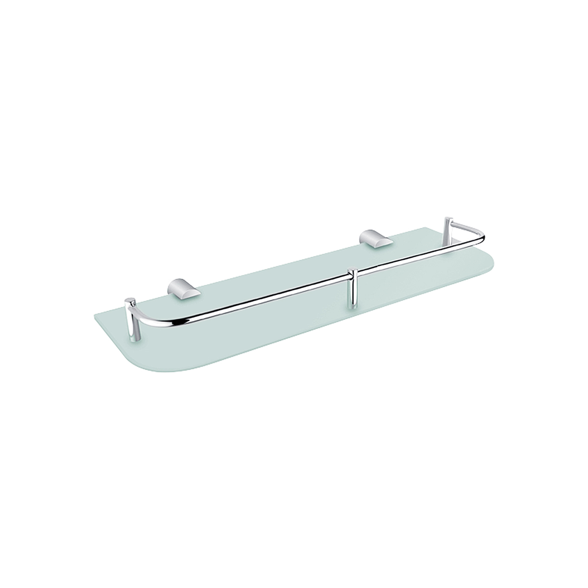 Satin glass shelf with rail and rounded corners. 40 cm long.