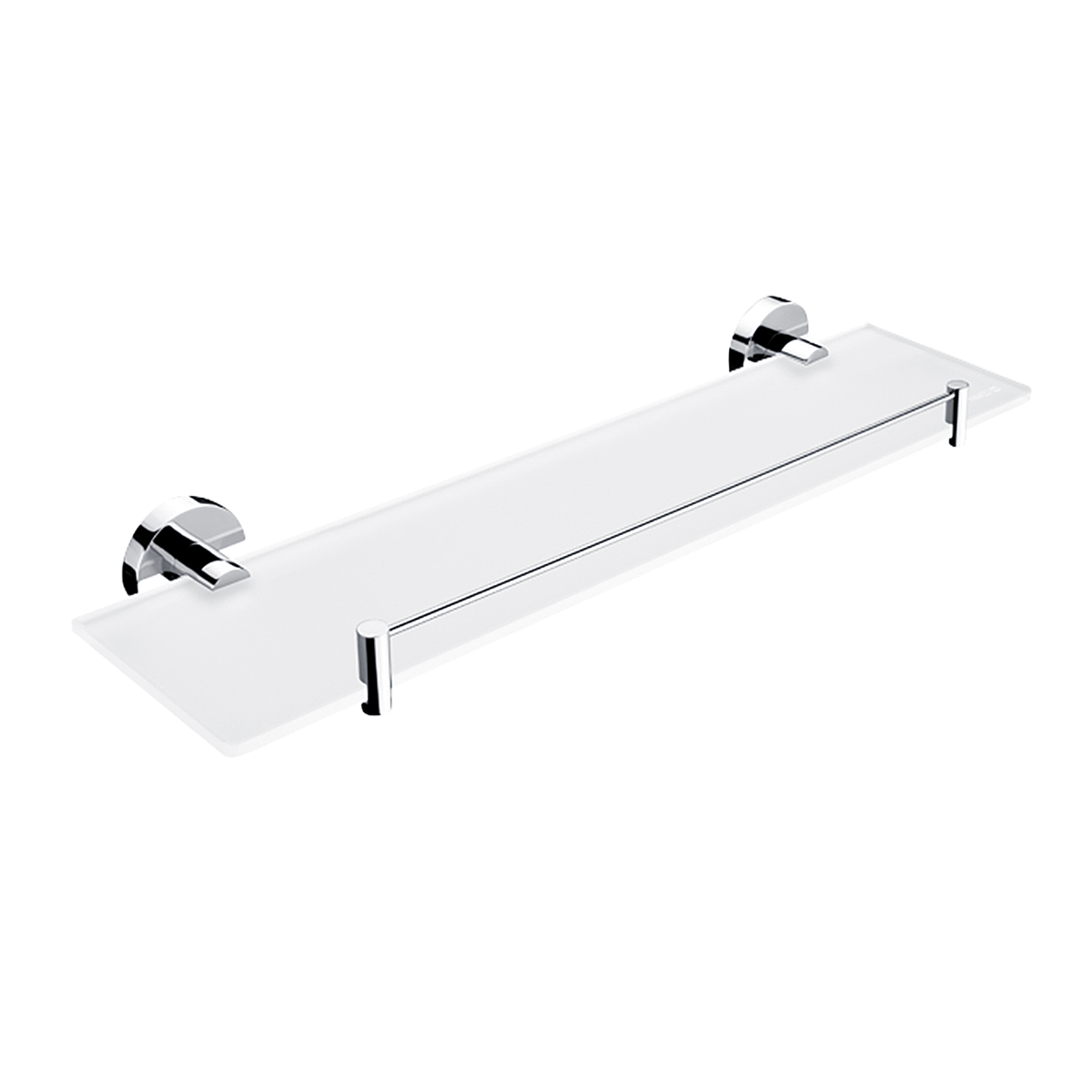 Shelf with rail. Extra clear glass, satin . Size 50x11 cm. 8 mm thick glass!