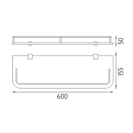 Satin glass shelf with rail and rounded corners. 60 cm long.