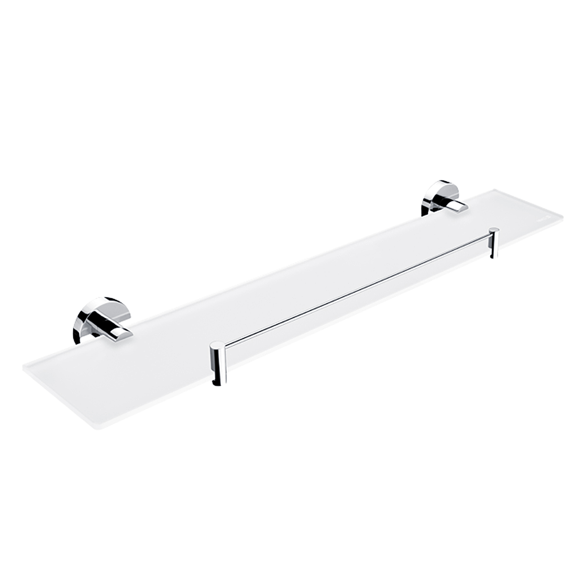 Shelf with rail. Extra clear glass, satin . Size 60x11 cm. 8 mm thick glass!