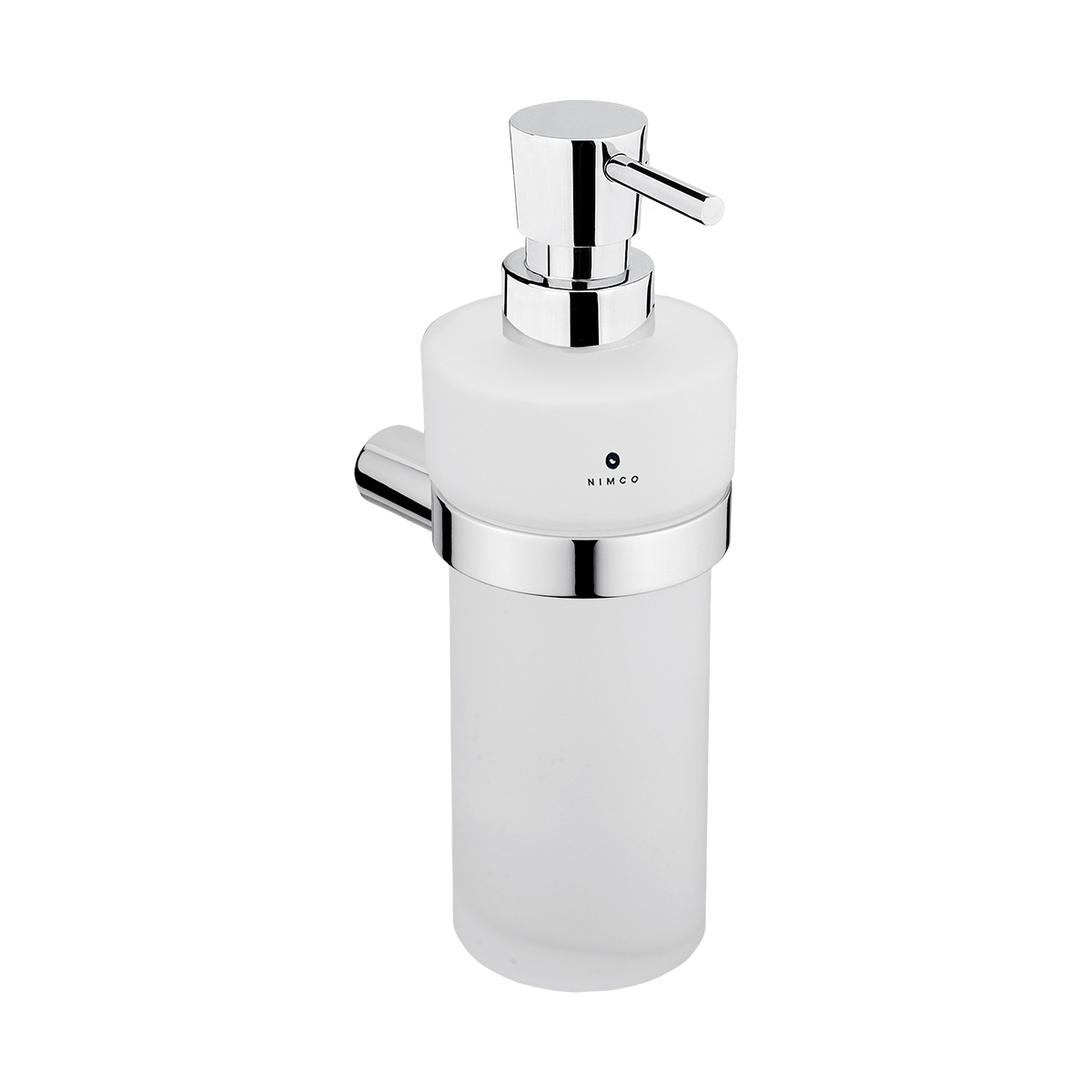 Soap dispenser. Brass pump with chrome surface. Container made of satin glass. Volume 250 ml.