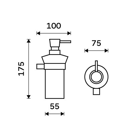 Soap dispenser. Brass pump with chrome surface finish. Ceramic container. Volume 280 ml.
