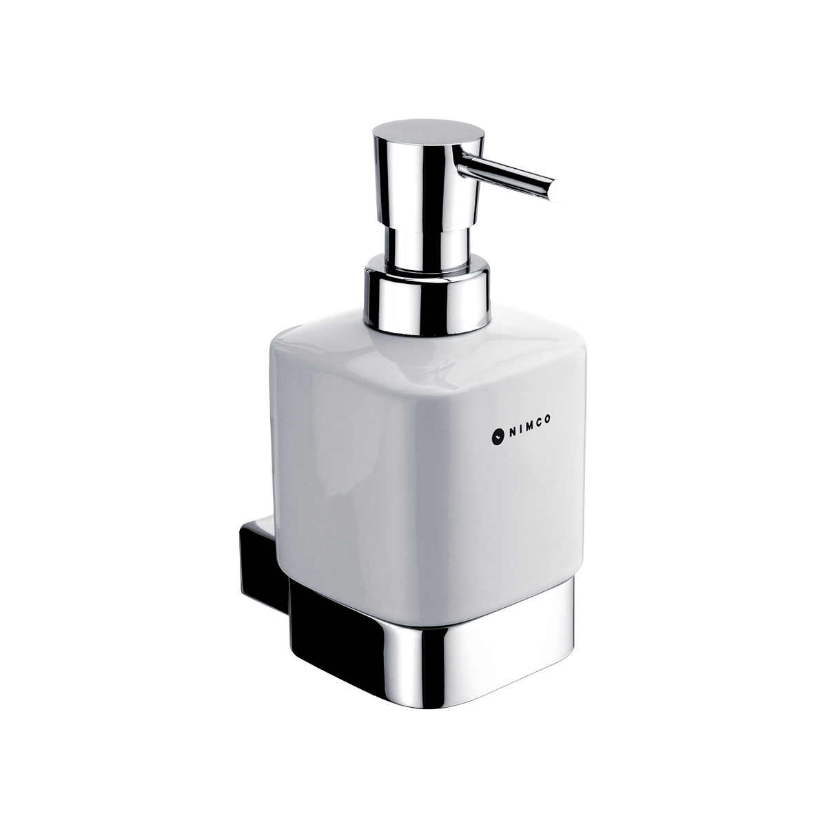 Soap dispenser. Ceramic container. Brass pump and holder / chrome. Volume 320 ml.