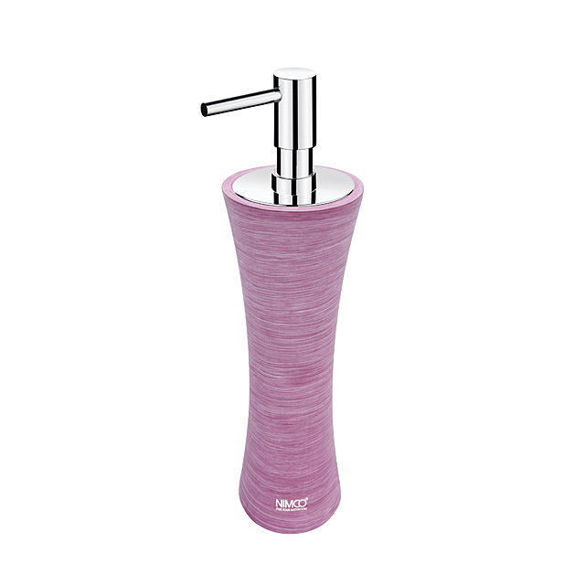 Soap dispenser made of polyresin with chrome plated plastic pump.