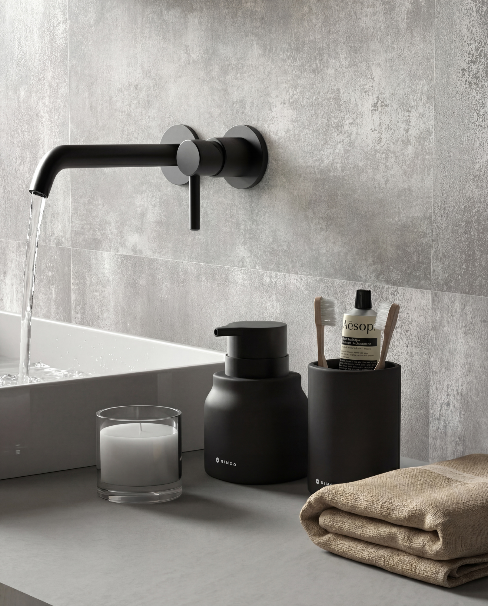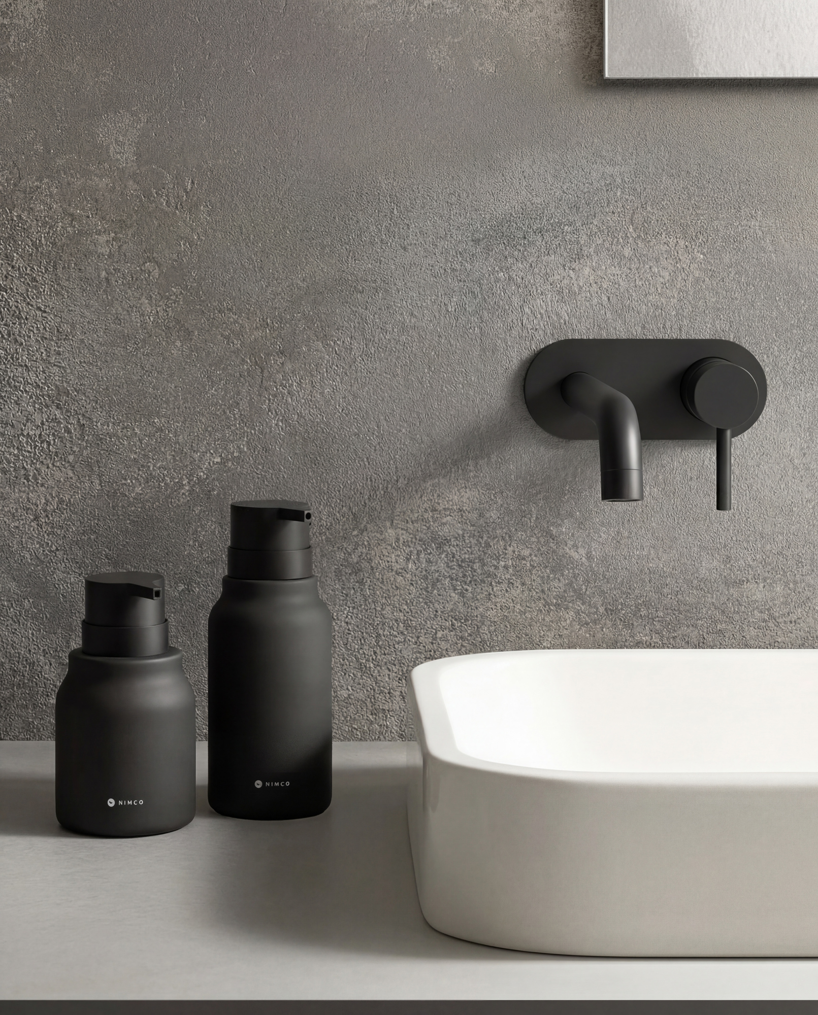 Ceramic dispenser for liquid soap black matte. Volume 400 ml. Soft-touch Surface.