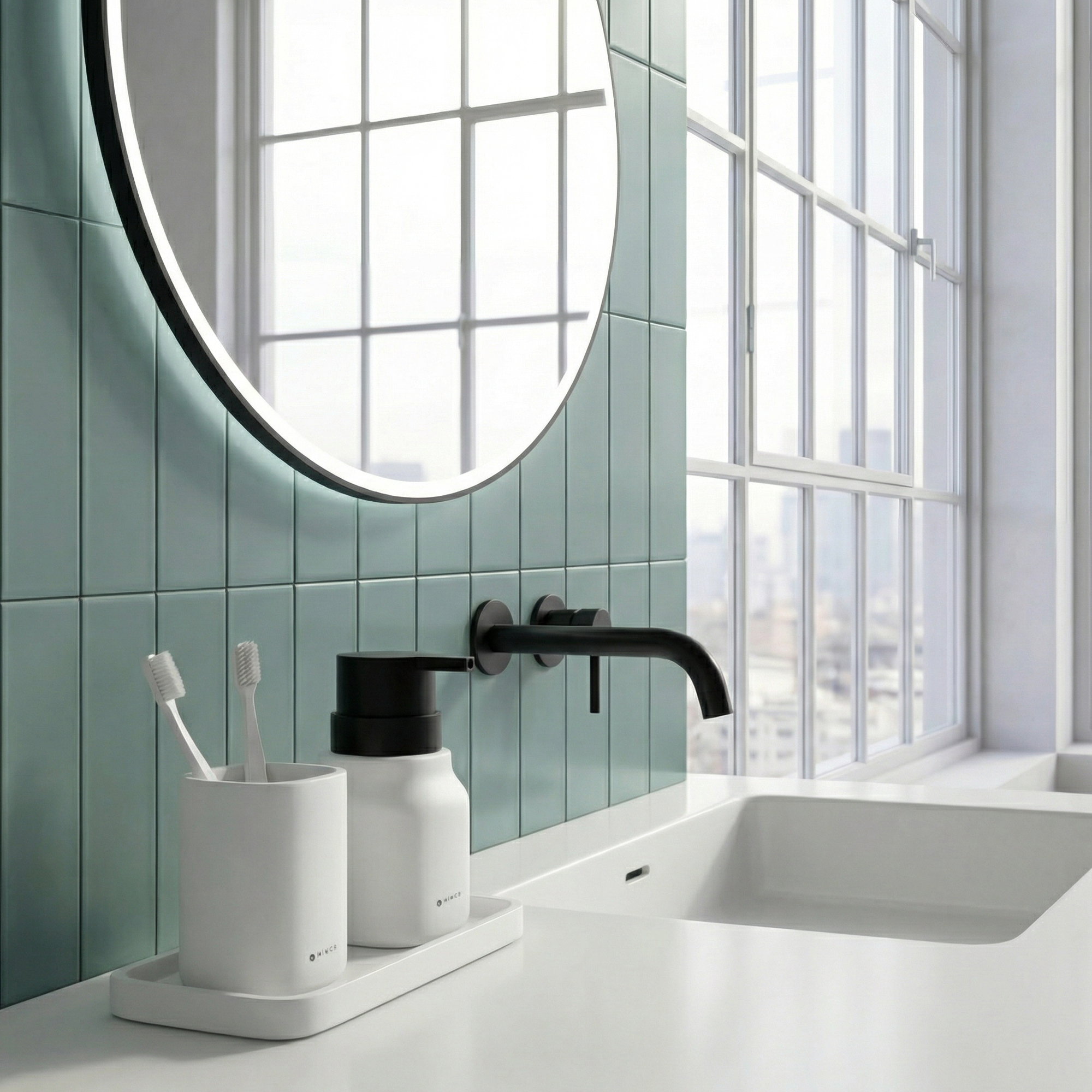 Ceramic dispenser for liquid soap white matte. Volume 400 ml. Soft-touch Surface.