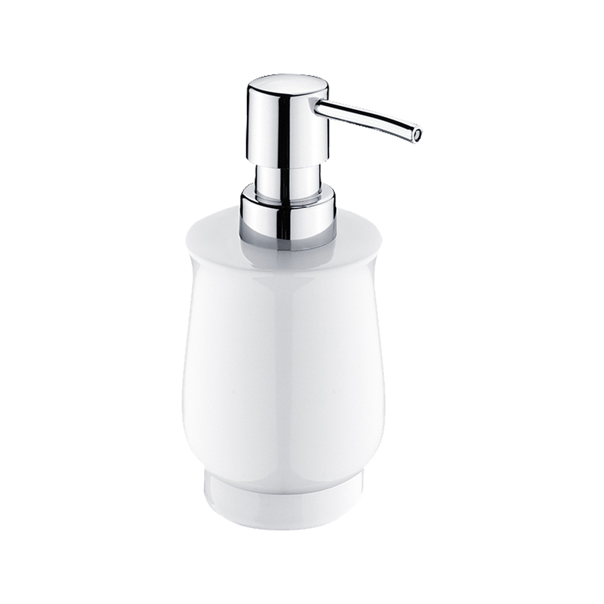Ceramic soap dispenser. Volume 300 ml. Plastic pump. Chrome surface finish.