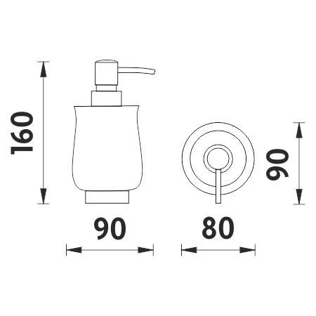 Ceramic soap dispenser. Volume 300 ml. Plastic pump. Antique brass surface finish.