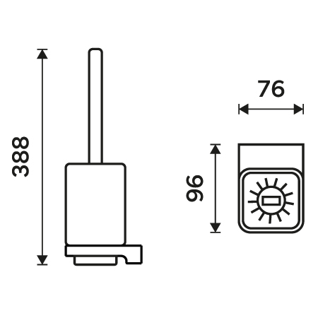 Toilet brush holder. Satin glass container. Chrome brush handle.