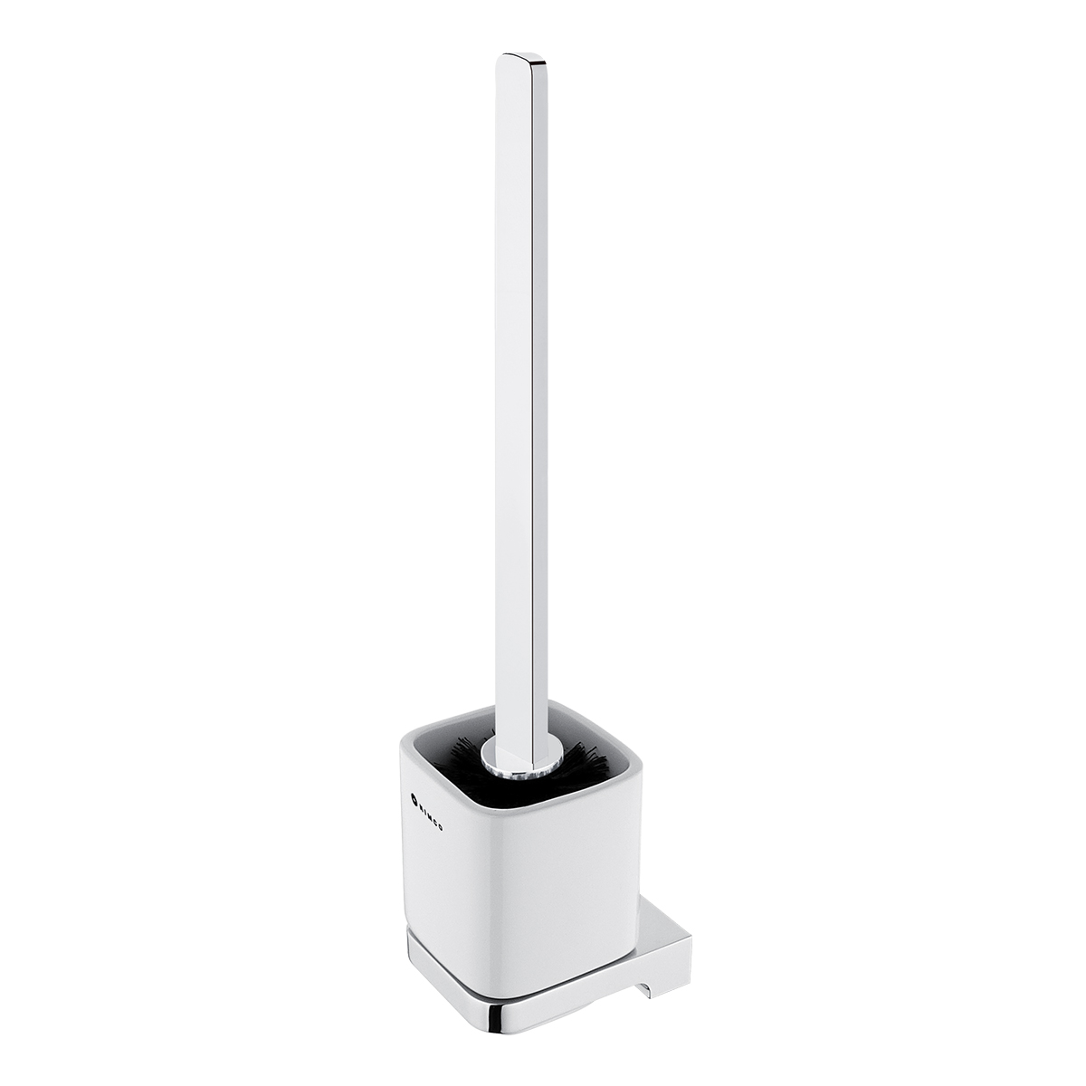 Toilet brush holder. Ceramic container. Chrome brush handle.