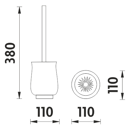 Ceramic free standing toilet brush holder. Metal handle with chrome surface finish.