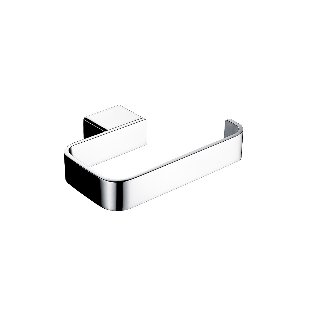 Toilet paper holder without cover. Made of brass with chrome surface finish.