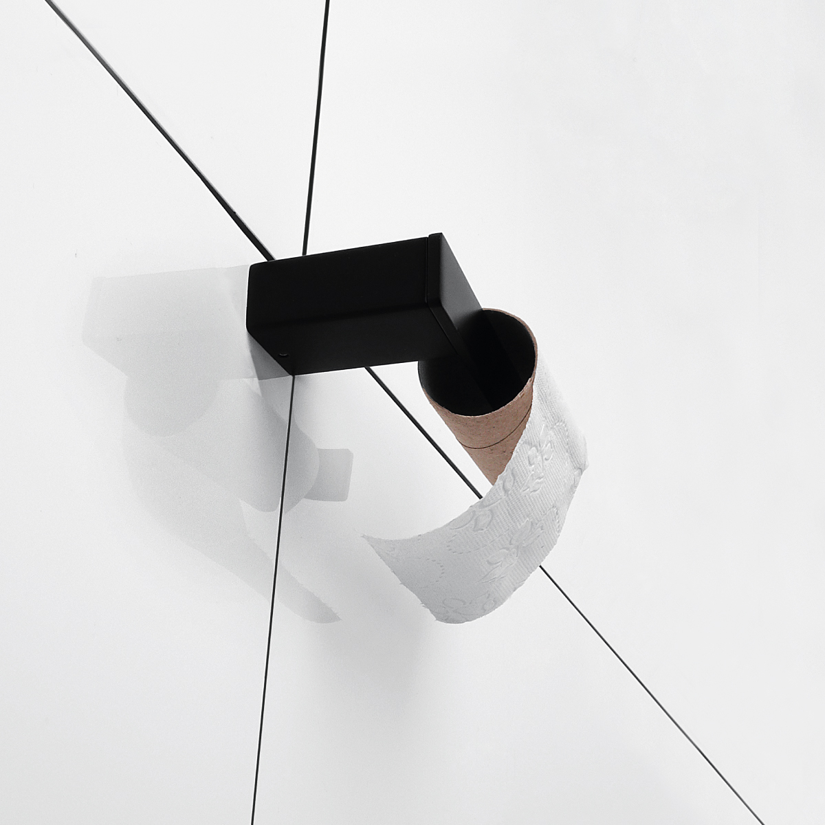 Toilet paper holder without cover. Made of brass with matte black surface finish.
