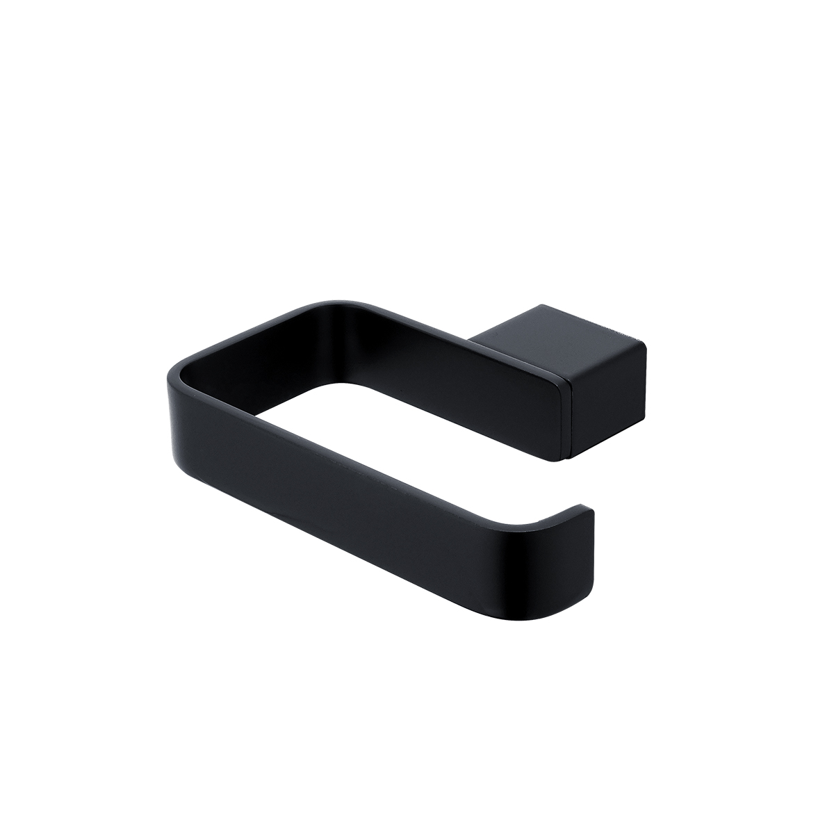 Toilet paper holder without cover. Made of brass with matte black surface finish.