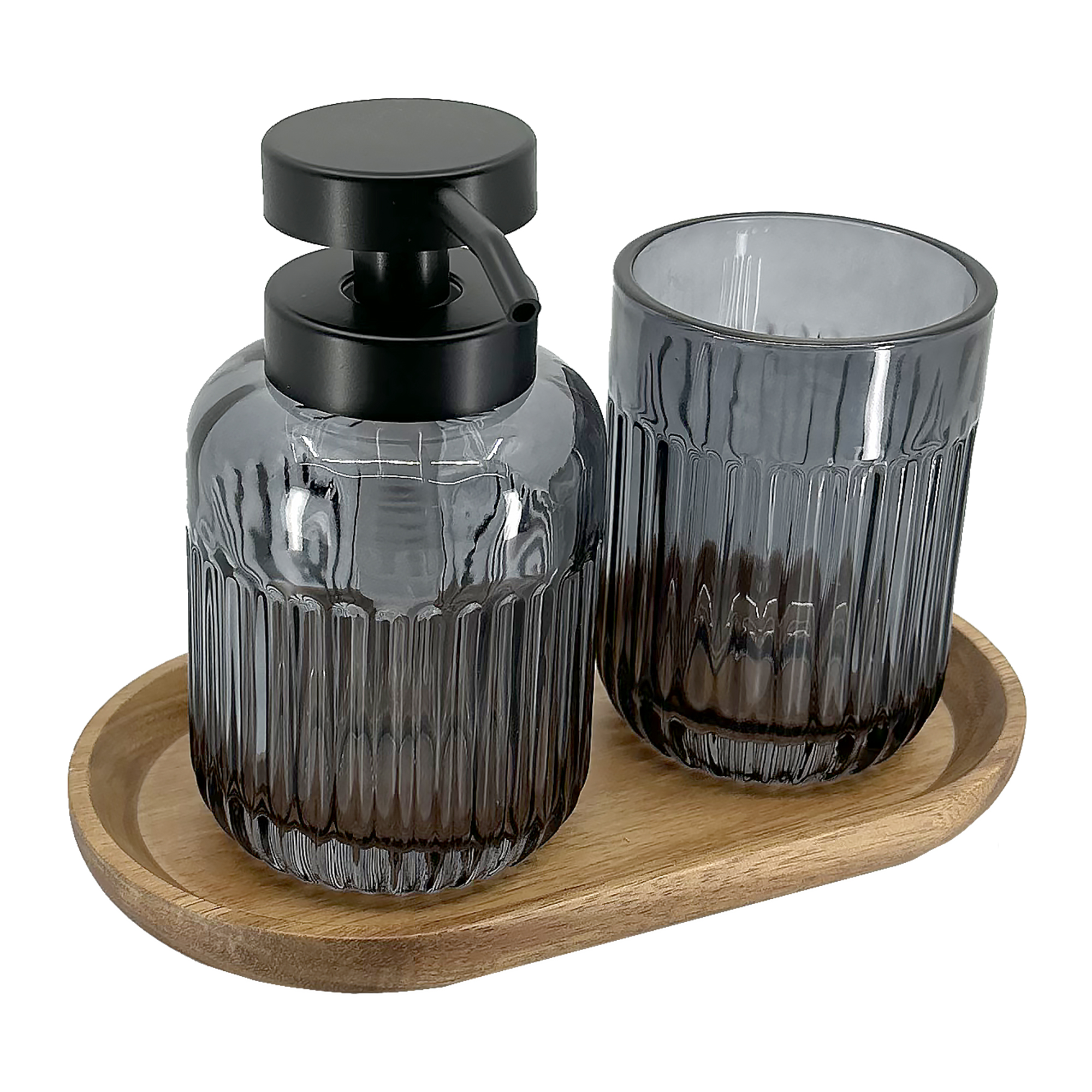 Toothbrush holder made of translucent black glass with a glossy finish.