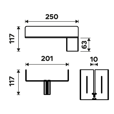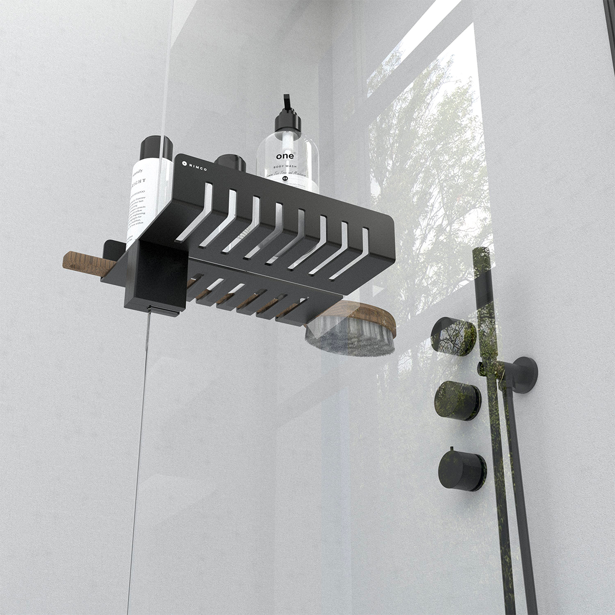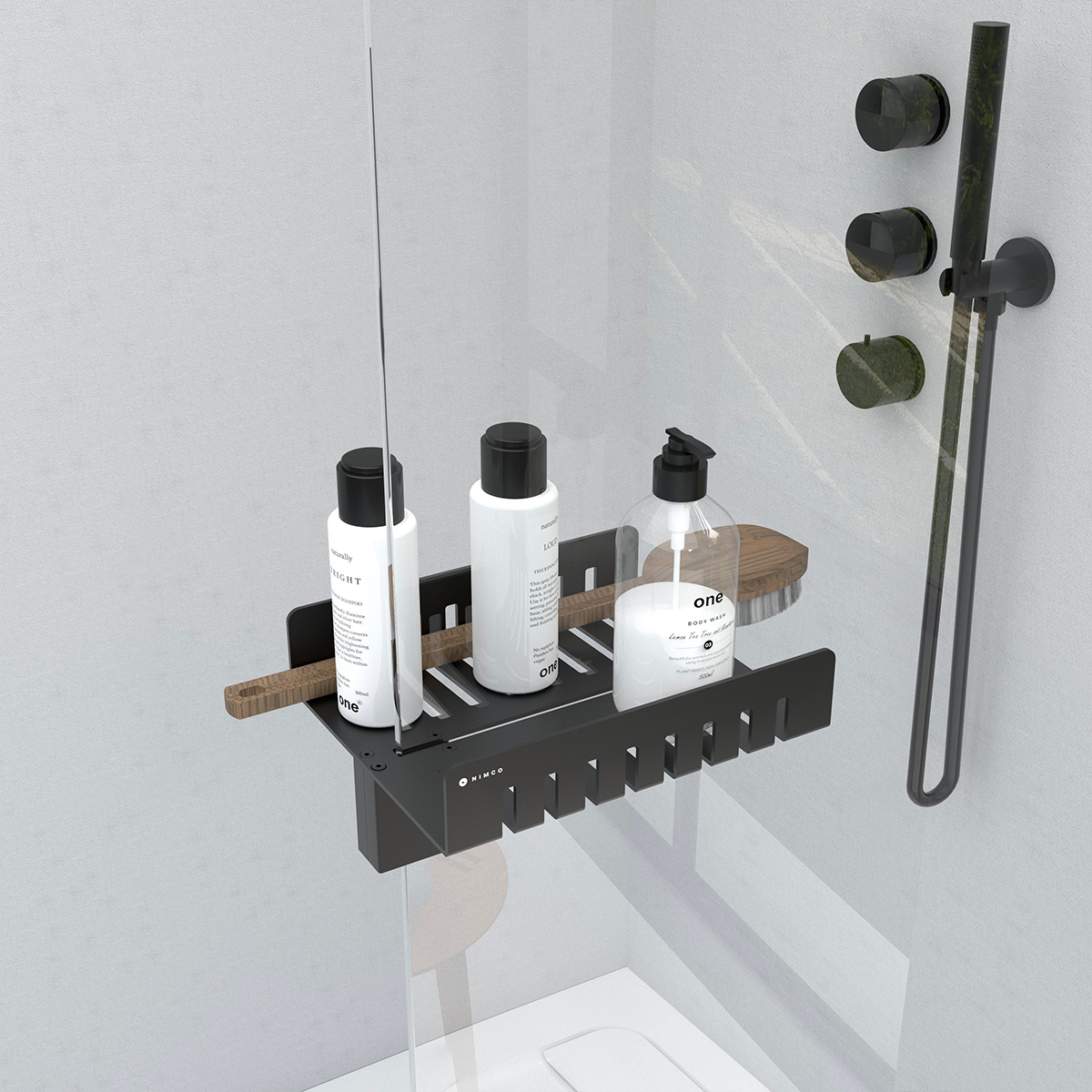 Double shower shelf for a walk-in shower glass wall. Glass wall max 5-8 mm thick.