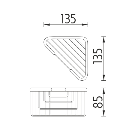 Wire corner shelf for bath or shower.