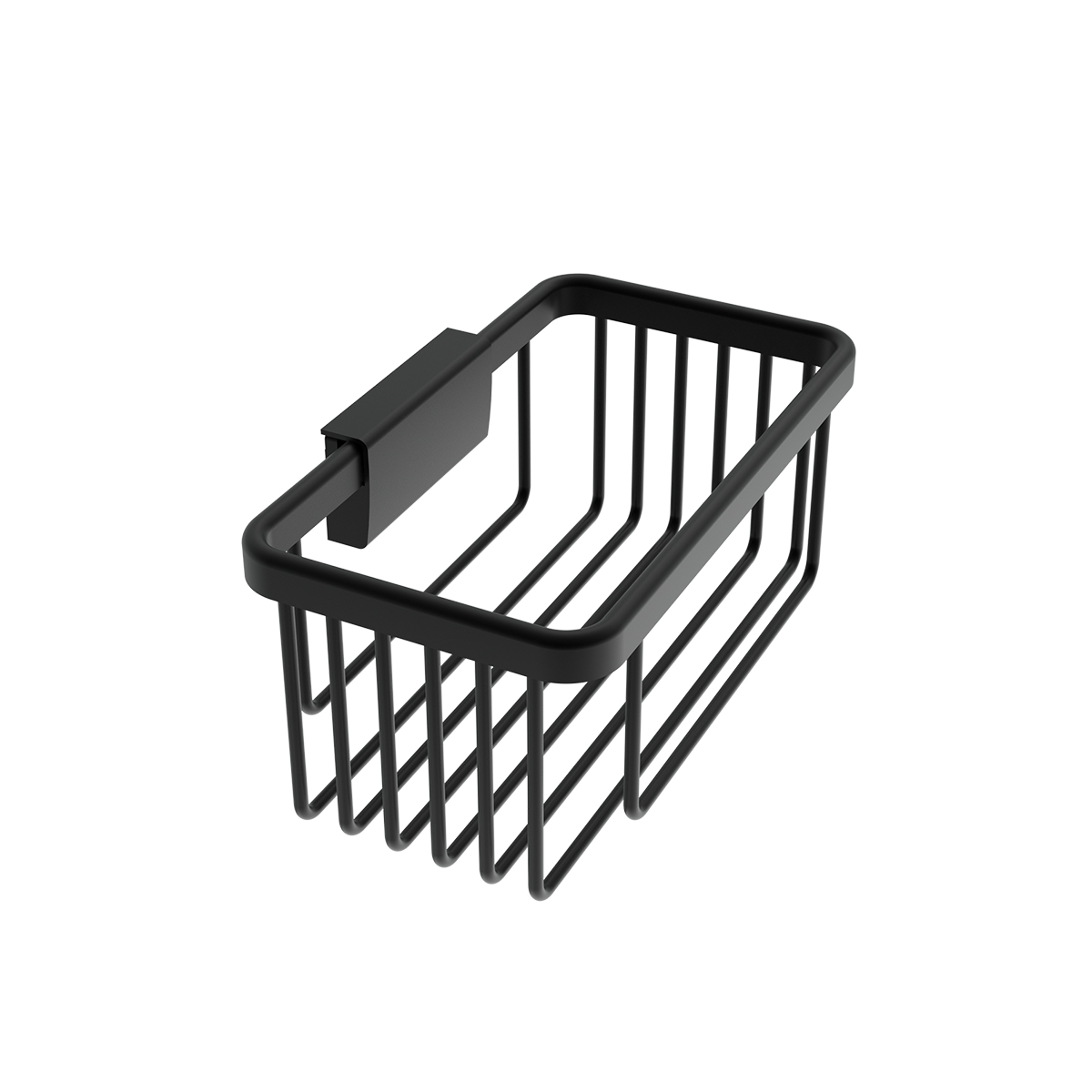 Černá koupelnová drátěná police se snadným sundáváním a čištěním.