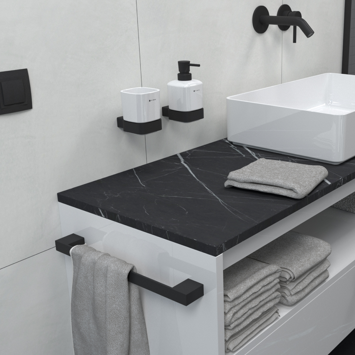 Nástěnný dávkovač na tekuté mýdlo. Nádobka keramická. Úchyt mosaz / černý mat. Objem dávkovače 320 ml.