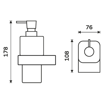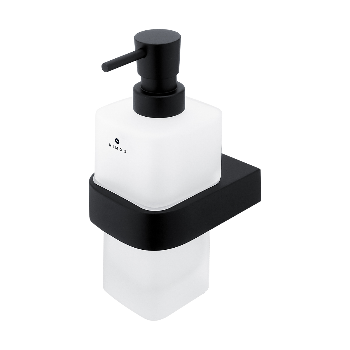 Nástěnný dávkovač na tekuté mýdlo o objemu 290 ml. Nádobka z matného skla. Pumpička mosaz/černý mat.