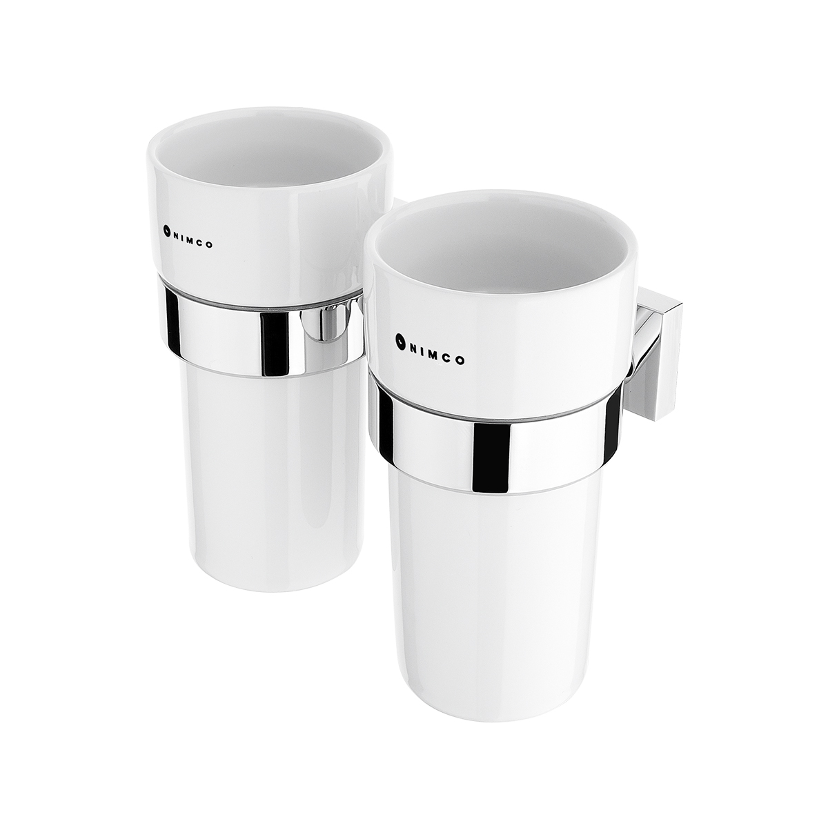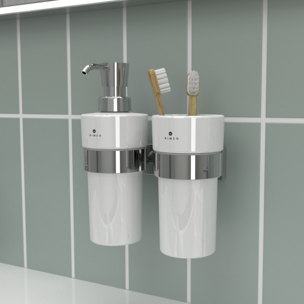 Držák na kartáčky dvojitý s keramickými pohárky.