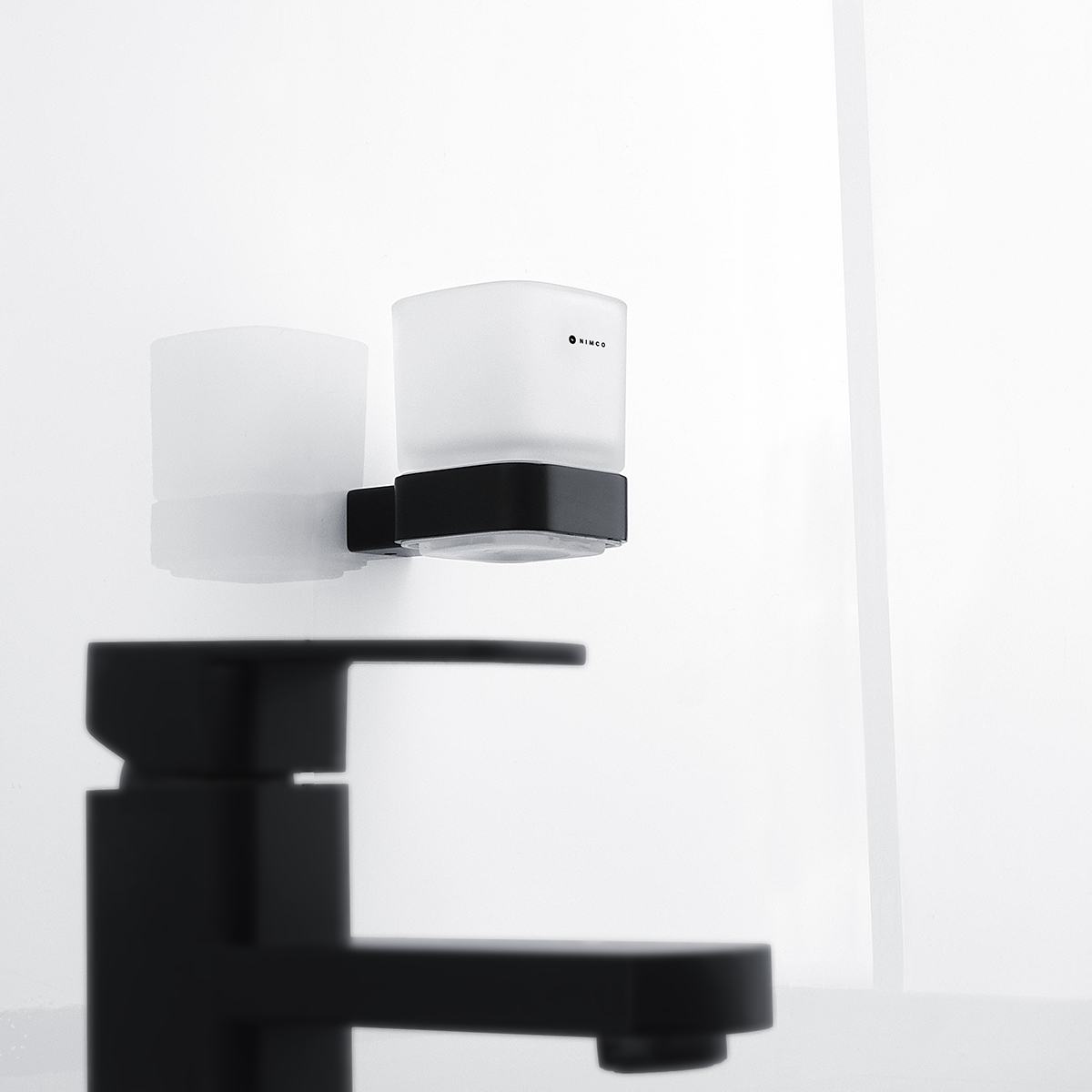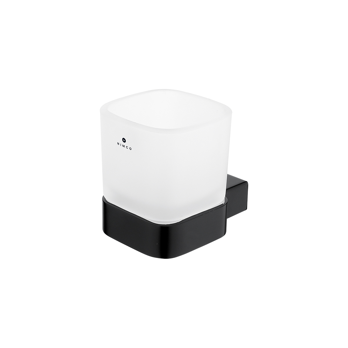 Držák na kartáčky s matnou sklenkou. Úchyt mosaz s povrchovou úpravou černý mat.