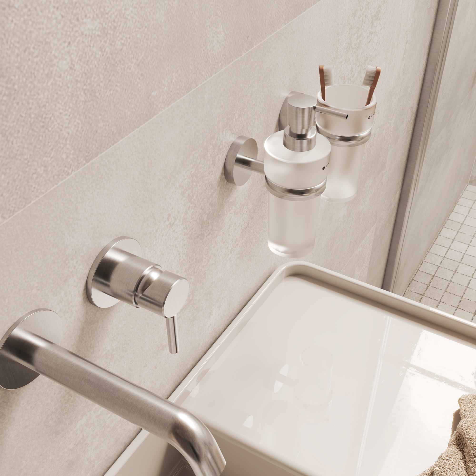 Držák na kartáčky, nádobka skleněná