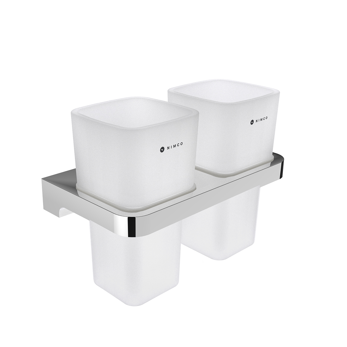 Dvojitý držák na kartáčky. Pohárky z matného skla.