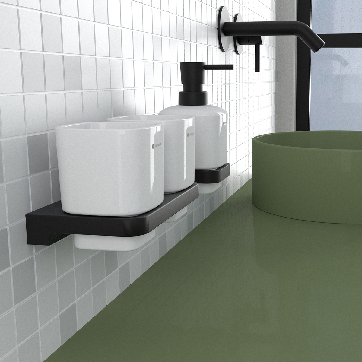 Dvojitý držák na kartáčky. Pohárky keramické.