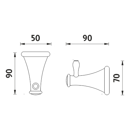 Háček jednoduchý. Materiál mosaz s povrchovou úpravou chrom.