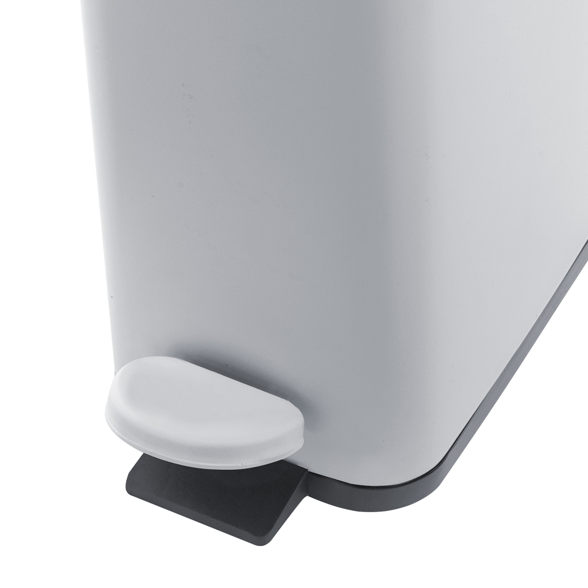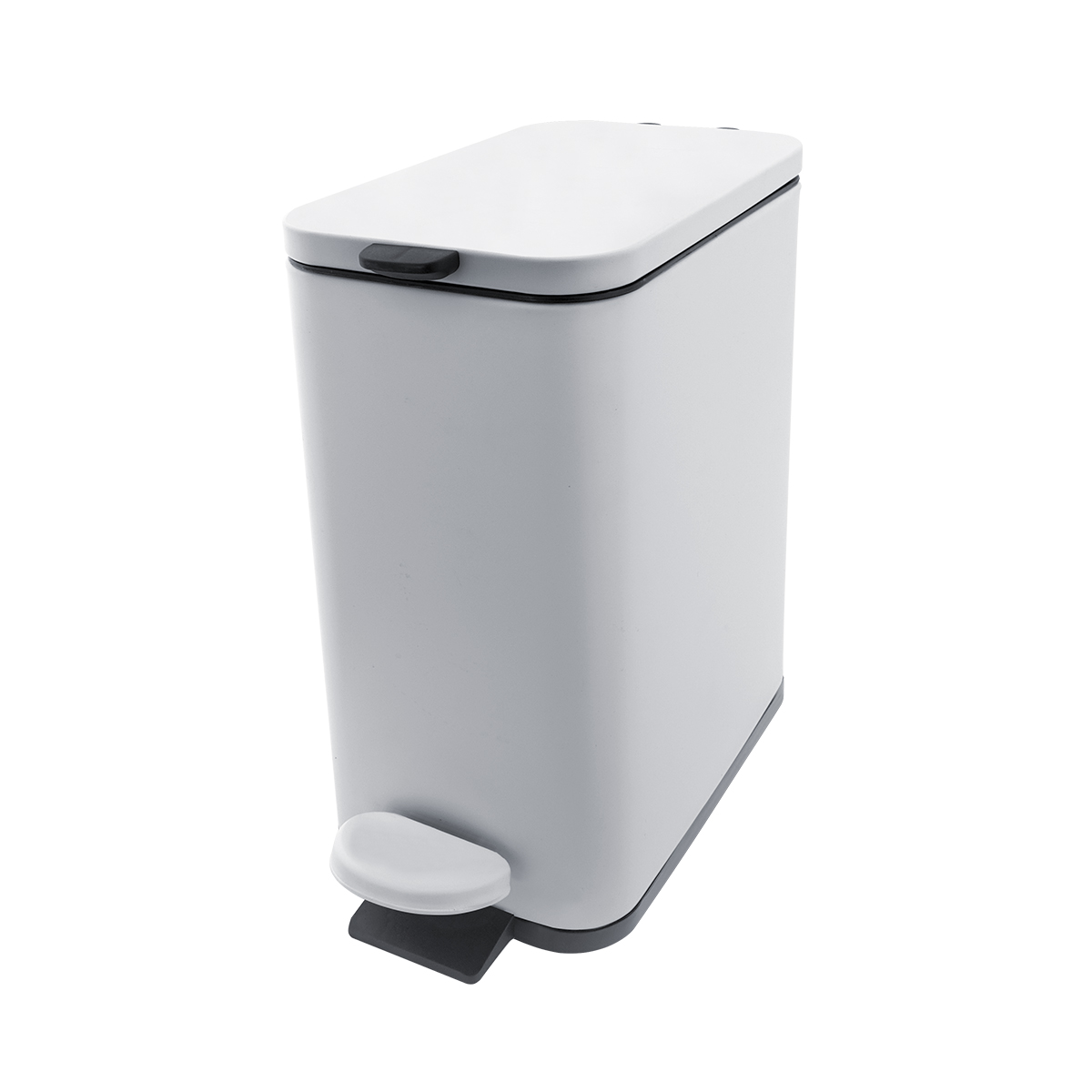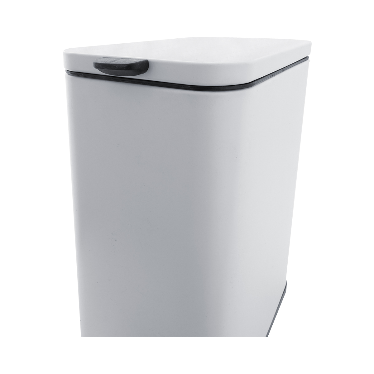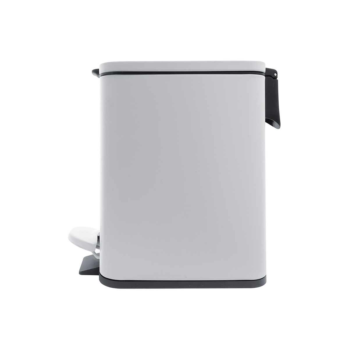 Koš odpadkový s vyjímatelnou nádobou. Objem 5 l. Povrchová úprava těla i pedálu bílý mat. Tiché soft close zavírání.