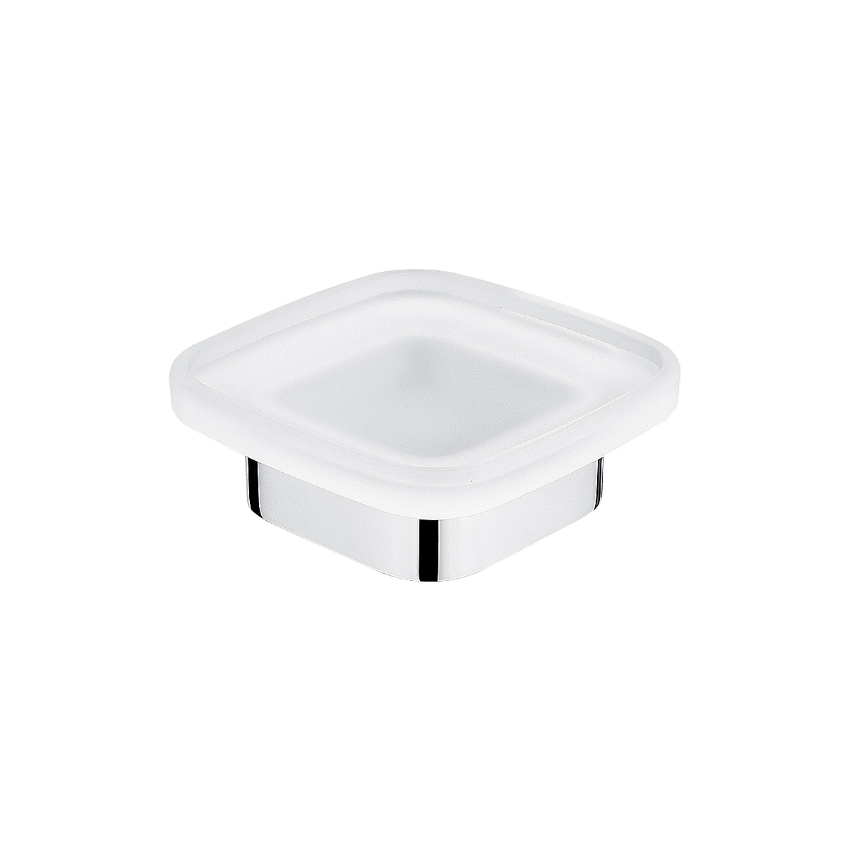 Mýdlenka. Nádobka z matného skla. Úchyt mosaz s povrchovou úpravou chrom.