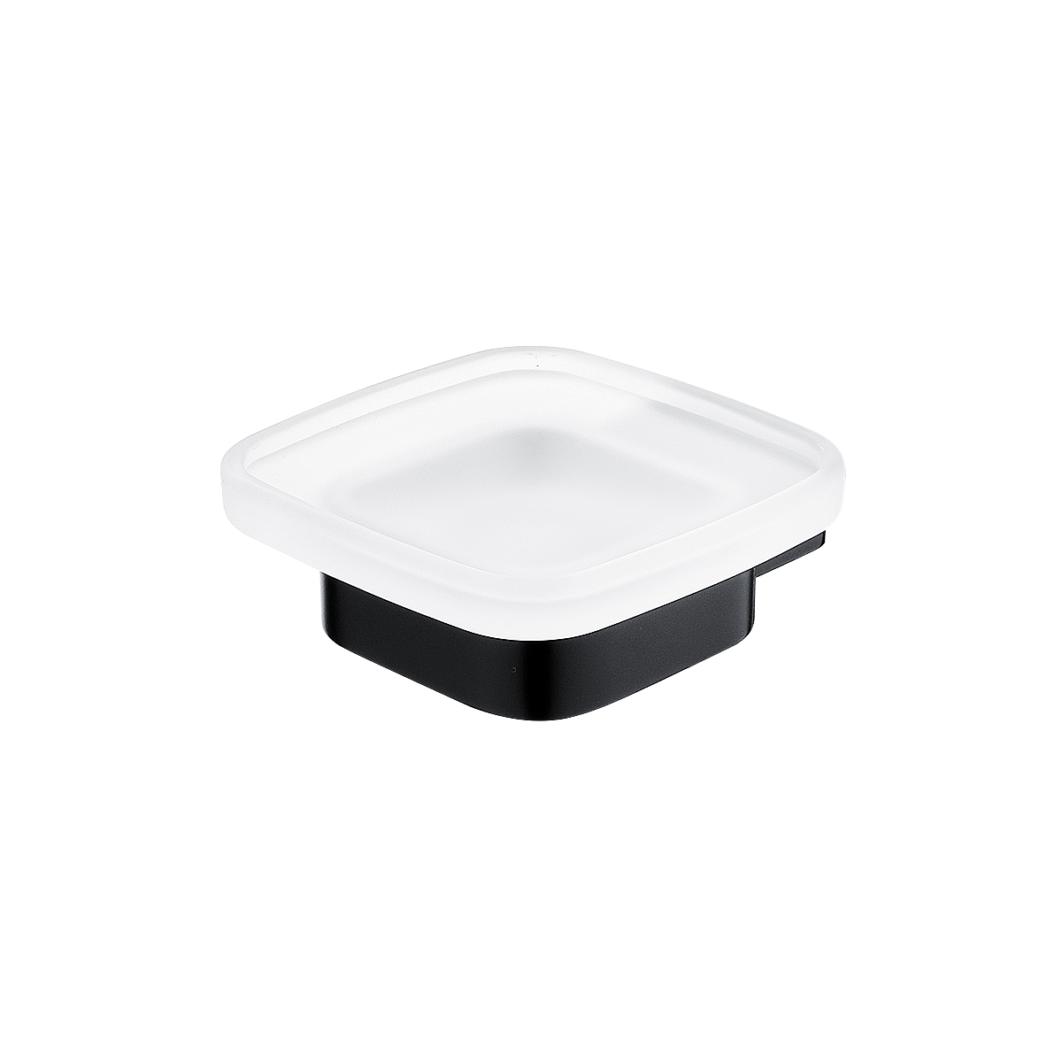 Mýdlenka. Nádobka z matného skla. Úchyt mosaz s povrchovou úpravou černý mat.